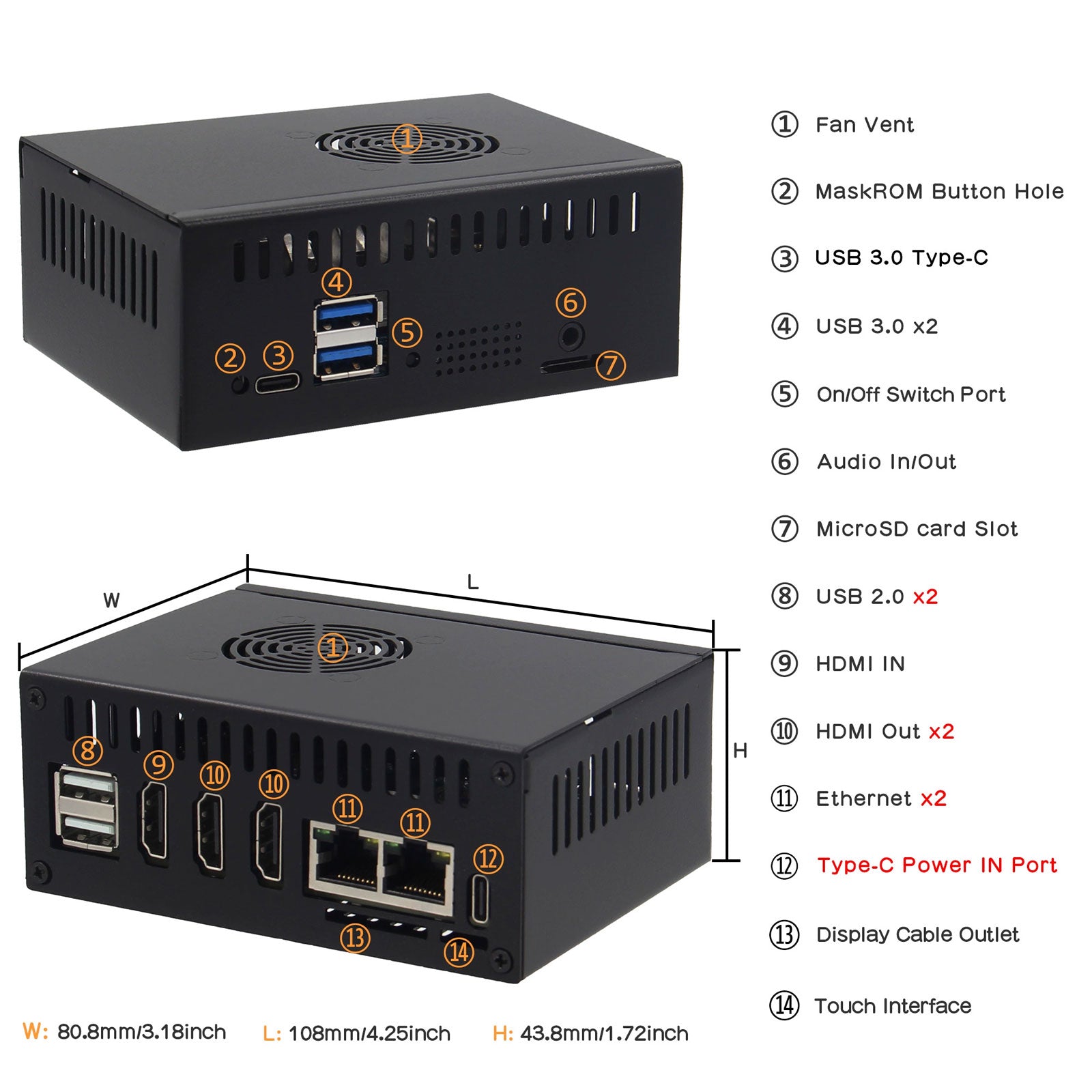 - All reserved ports and slots are customized for Orange Pi 5 Plus.
