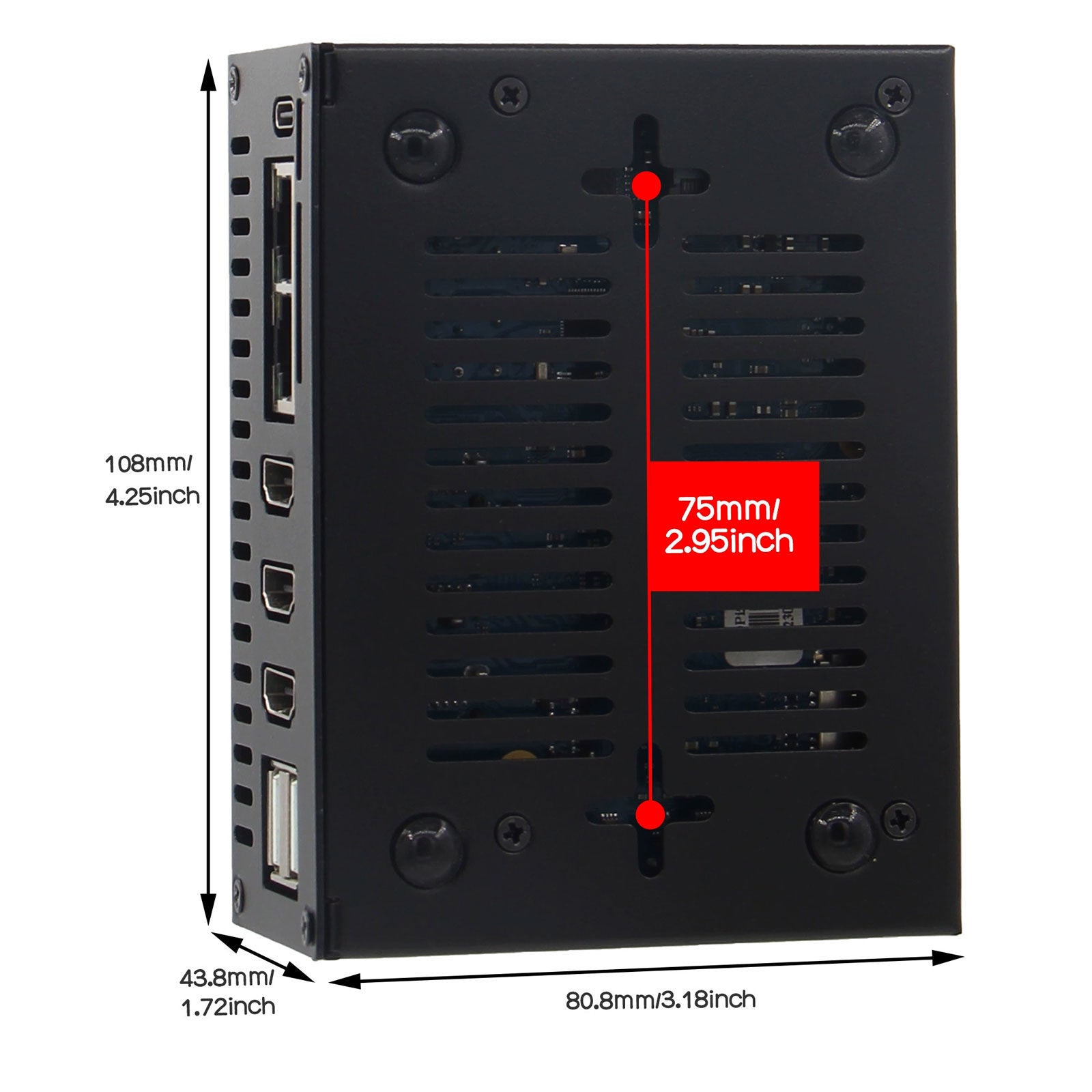 - The chassis design has hanging holes with a spacing of 75mm, allowing you to hang them anywhere.