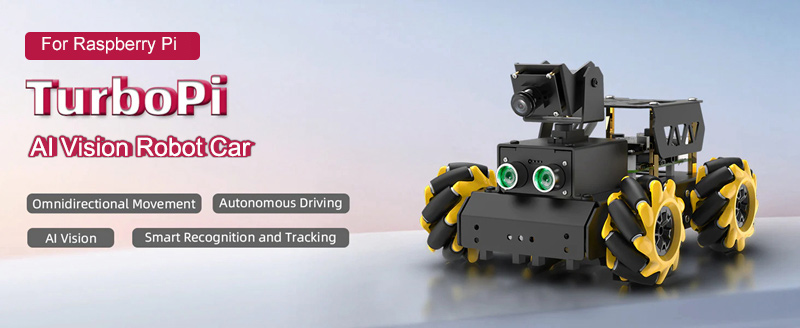 TurboPi is an open source AI vision robot car designed for beginners. It is built on Mecanum wheel chassis, loaded with 120-degree wide angle camera and uses parts to process images.