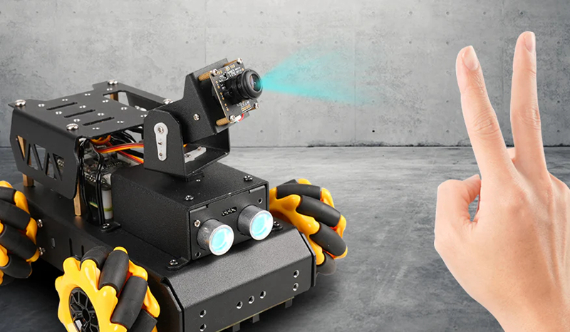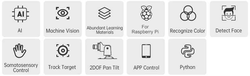 TurboPi uses image processing library, adopts development tool for Jupter Lab, programmed in Python3 and armed with 2DOF camera pan tilt and DC motor. It is skilled in face tracking, color tracking, QR code recognition, gesture recognition, object recognition, license plate recognition, line following and many more AI games.