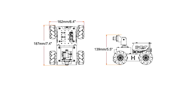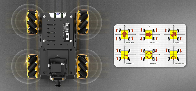 With 4 omnidirectional mecanum wheels, TurboPi can move 360°. Different movement modes (move forward, horizontally, diagonally and rotate ) and excellent performance make it bold to challenge various complicated routes.
