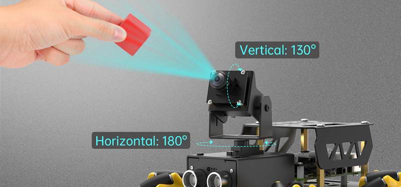 Equipped with 2 anti-blocking servos, pan tilt can rotate 130° vertically and 180° horizontally, which contributes to 360° camera field of view.