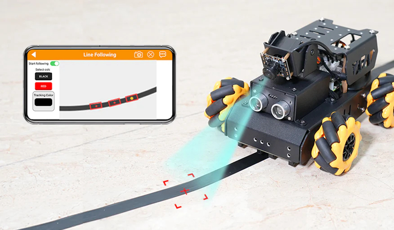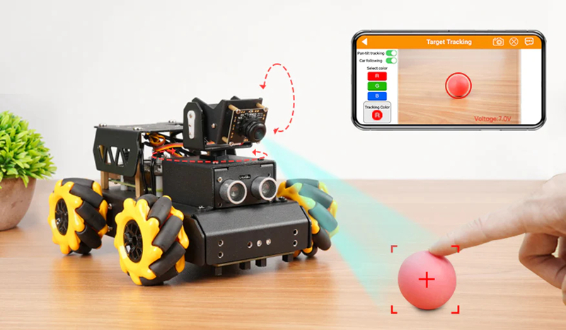 TurboPi can track specific color. After you select the color on the APP, it emits light of corresponding color and moves with the object of that color.