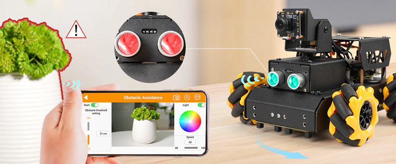 Loaded with glowy ultrasonic sensor with IIC interface, TurboPi can detect and avoid obstacle without occupying CPU for Raspberry Pi.