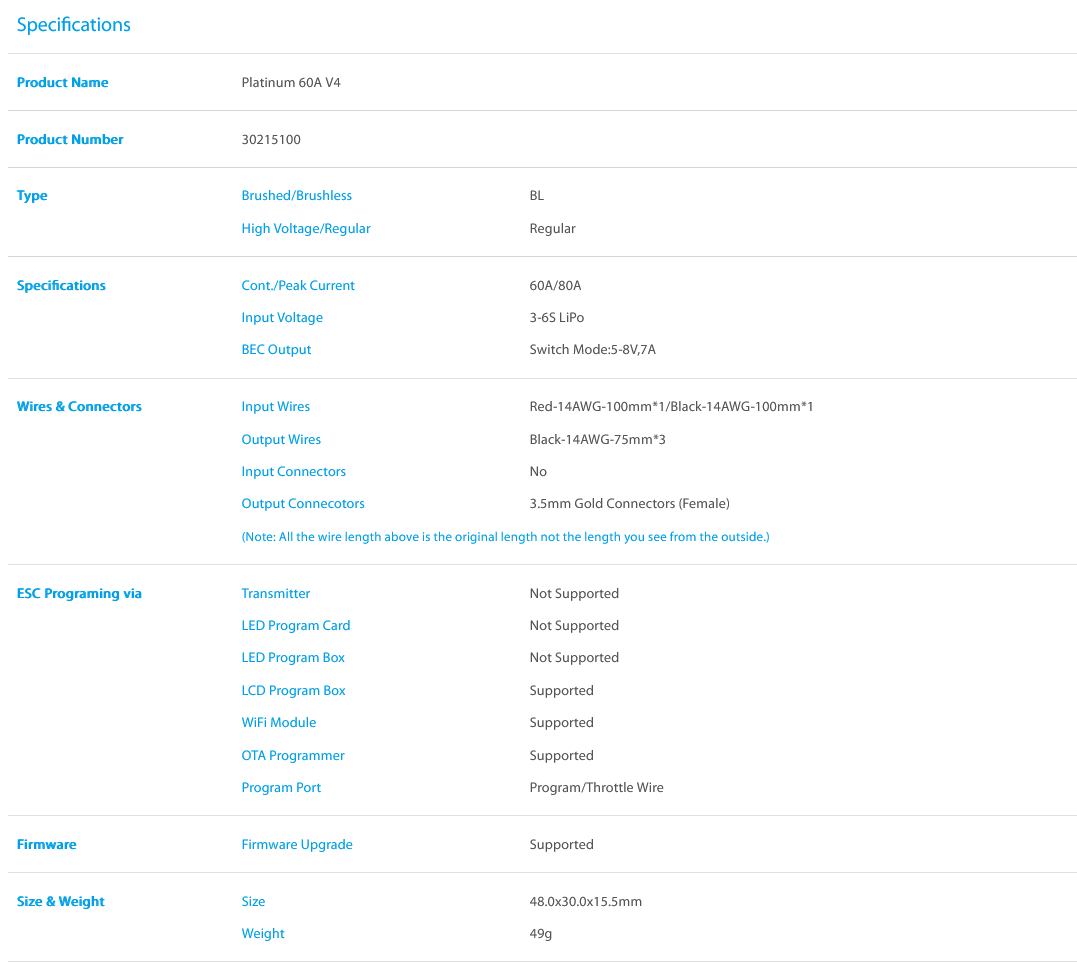Hobbywing Platinum 60A V4 Helicopter ESC Brushless Electronic Speed Control for Helicopter Airplane