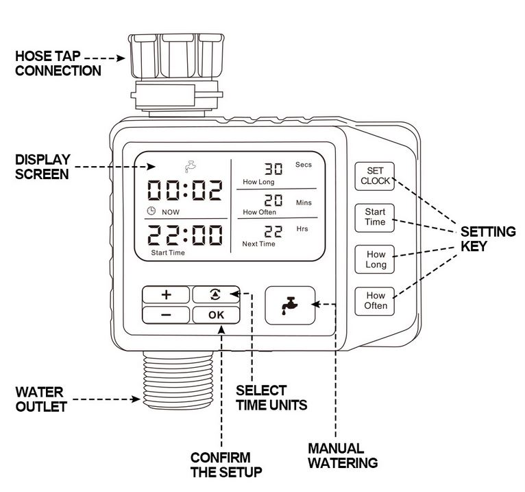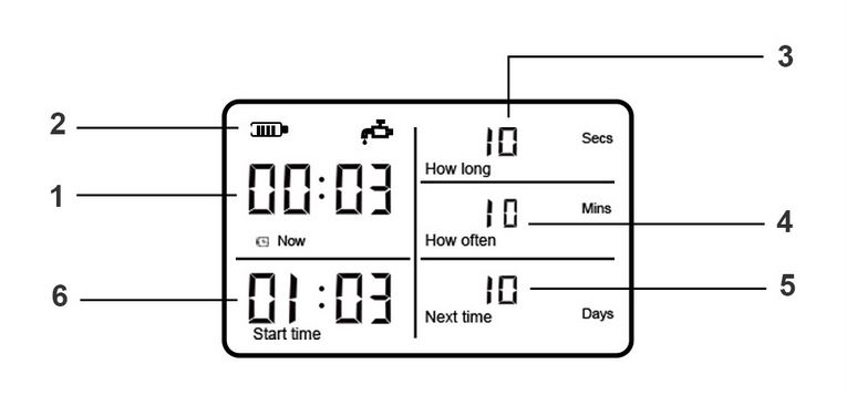 * Manual watering: Press this button for 3seconds to water manually