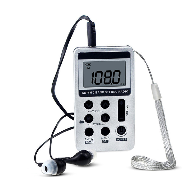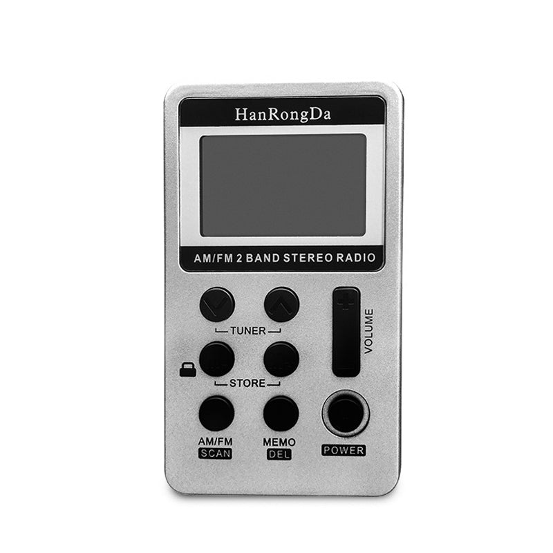 HRD-103 AM FM Radio Mini Radio Portable Pocket Radio Rechargeable USB Port LCD Display Silver Gray
