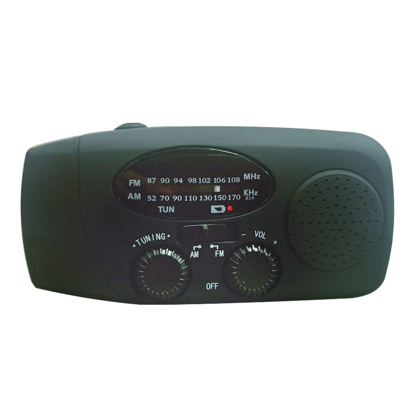 - 0.3W solar panels generate power by hand cranking. Three power supply methods: solar energy, hand-cranked charging, and UBS port charging.