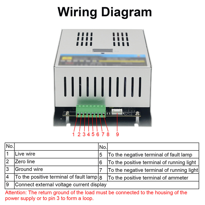 - Overload protection: When the load is too heavy, the power supply will operate in constant current mode, that is, the maximum current will be kept unchanged and the output voltage will drop.