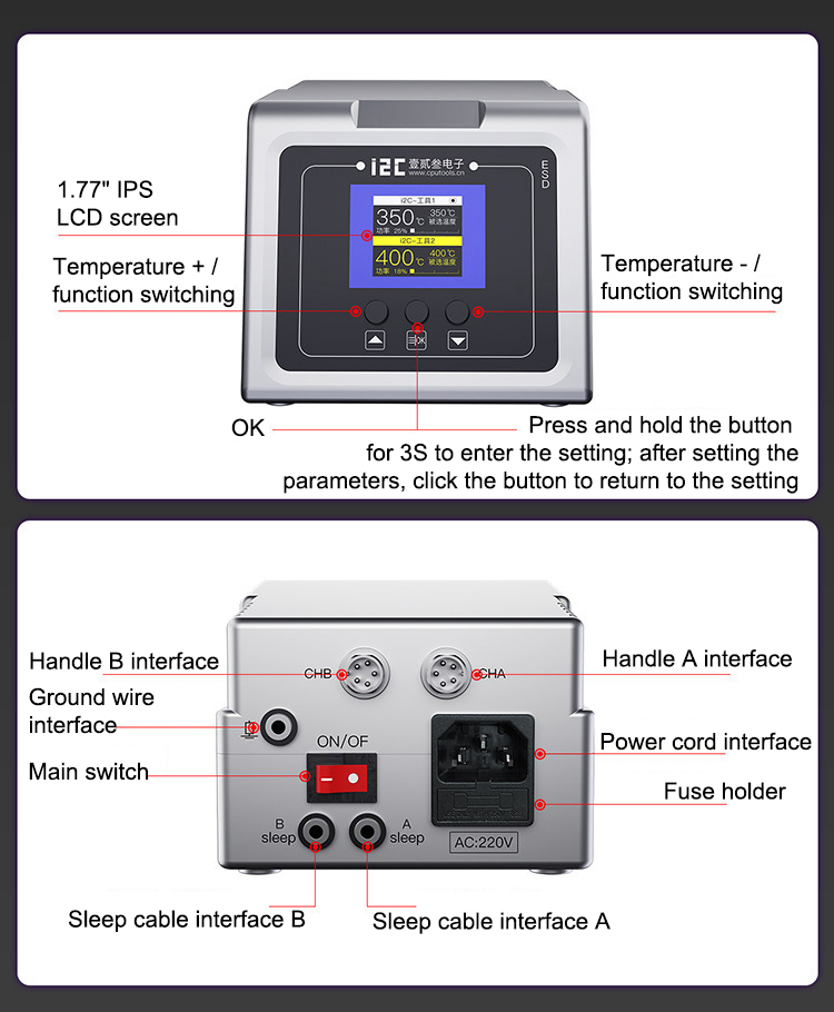 I2C 1SCN Soldering Station Precision Soldering Iron Station (with Two C115 Handles) for Phone Repair