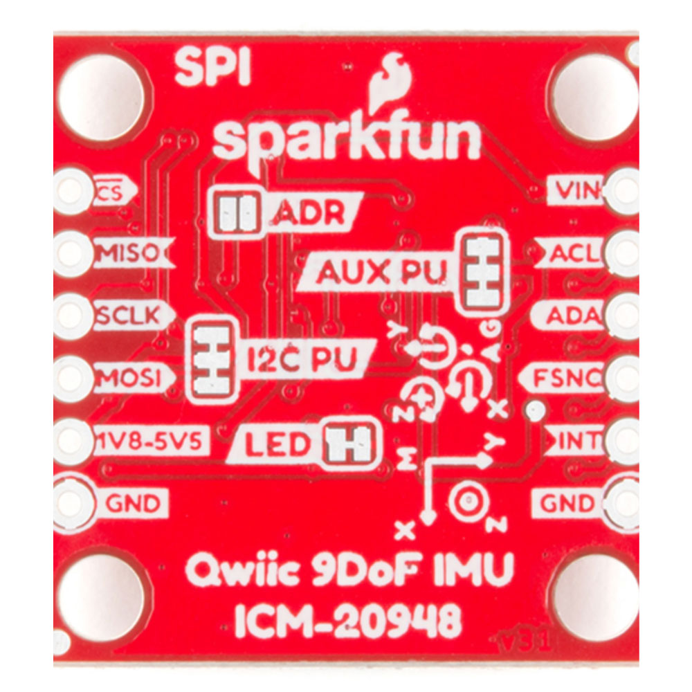 - We have also broken down all ICM-20948 pin functions to GPIO and labeled them as I2C on the front and SPI on the back for easy identification.
