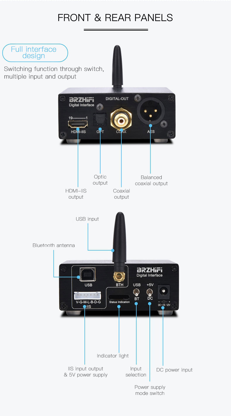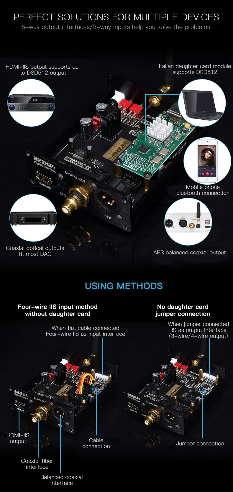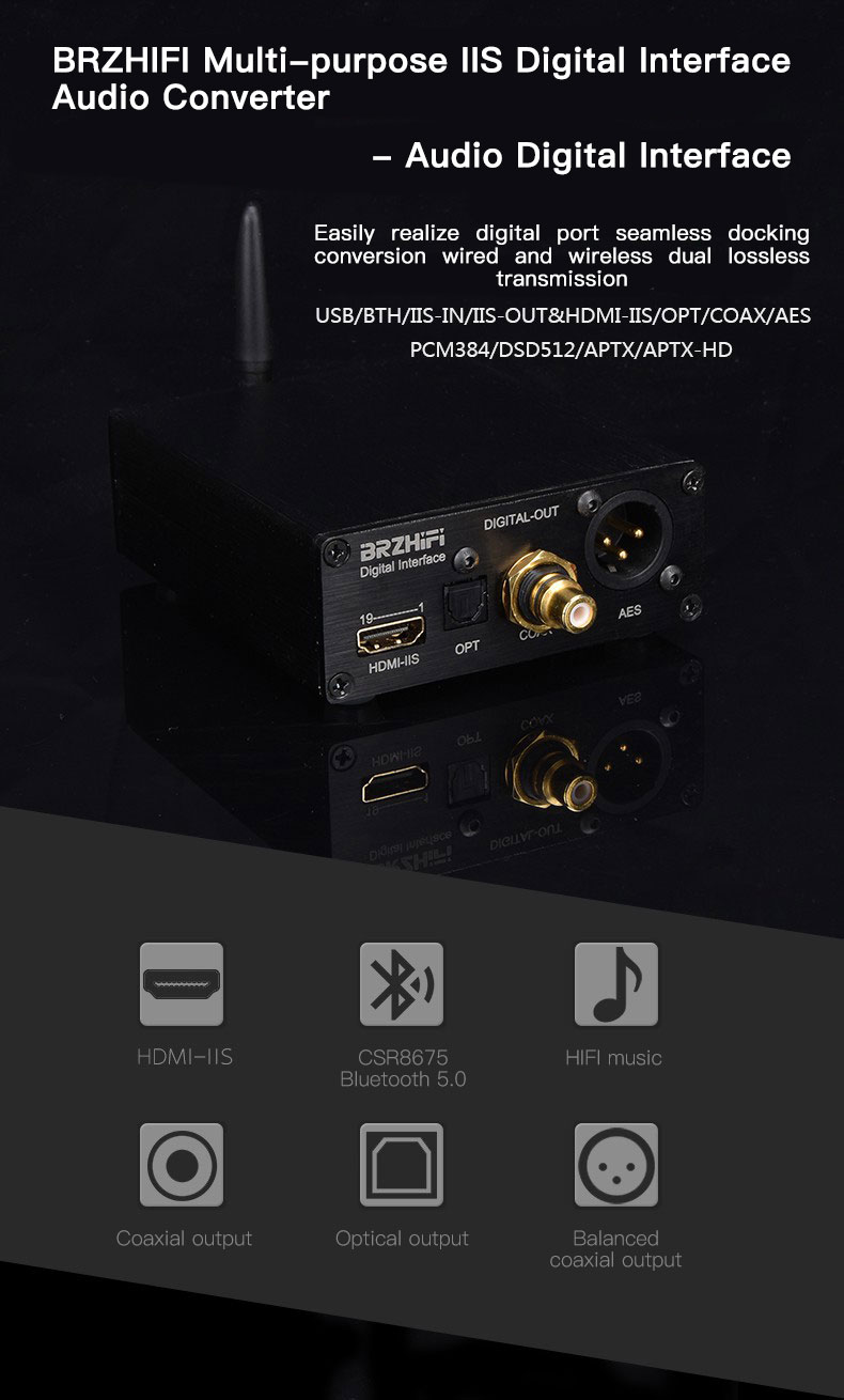 IIS Bluetooth Digital Audio Interface Digital Audio Converter DSD512 (with USB Daughter Card)