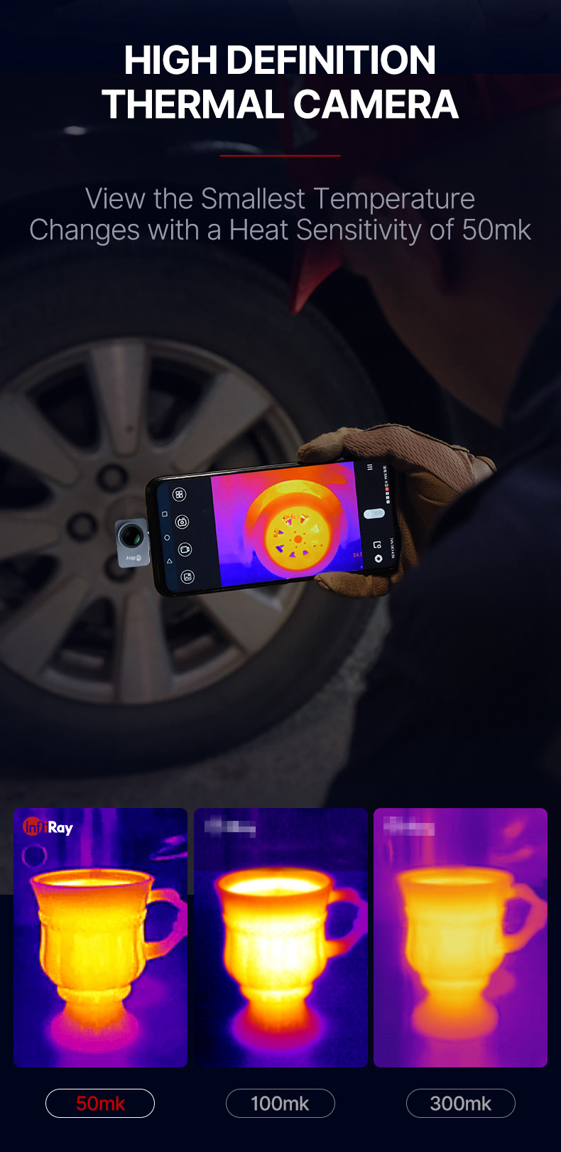 - Super Smallest Design: Dimension of 27mmx18mmx9.8mm and weighs 9g, with a fully metal body. With this mini design, this thermal camera makes it more convenient and lightweight to use.