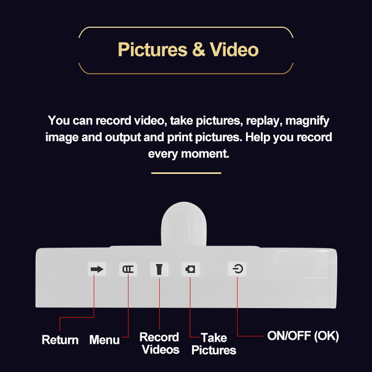 - Functions: Take pictures, record videos and output to print