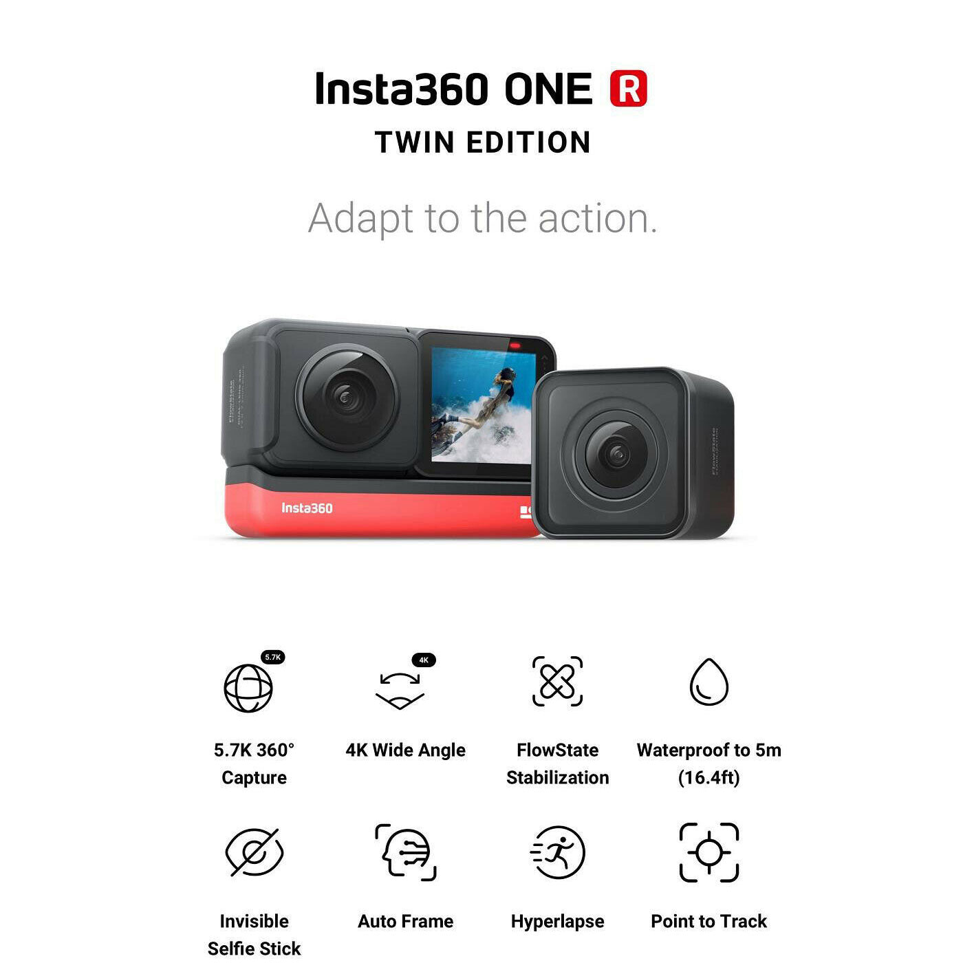 Insta360 ONE R Sports Action Camera 5.7K 360 4K Waterproof Video Camera for iPhone Android