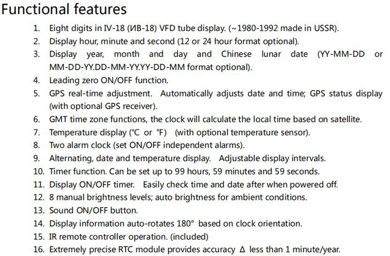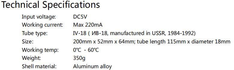 IV-18 VFD Nixie Tube Clock Assembled with Aluminum Alloy Shell Power Adapter