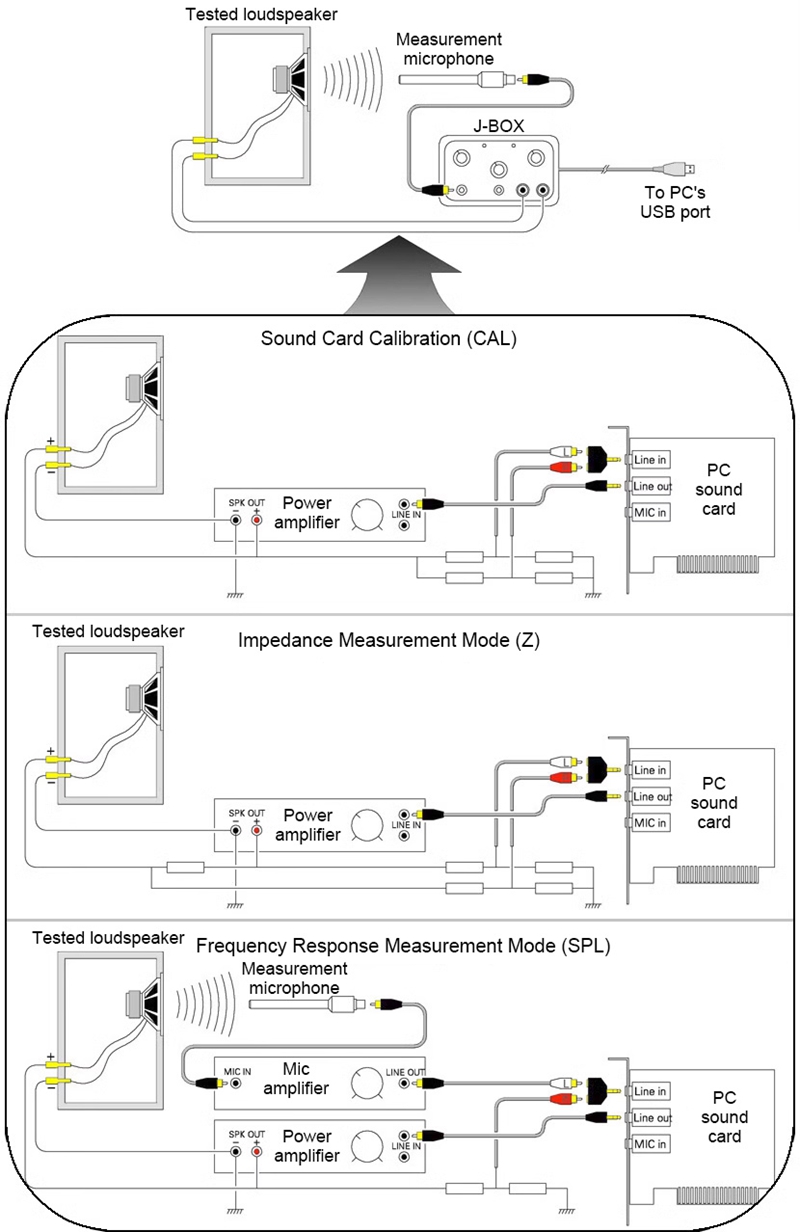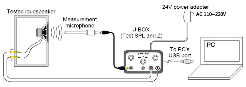 - The connection between J-BOX and a computer only requires a USB port. Just plug a USB cable, and all the settings of the sound card are completed. Built-in sound card specially designed for the measuring box eliminates the need for various settings in the computer volume console, and can be plugged in directly on Win XP and Win 64-bit computers. Driver-free and setup-free, saving time and effort in measurements.