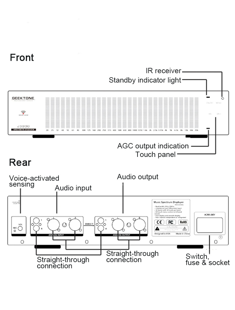 - Input interface: unbalanced/balanced/MIC