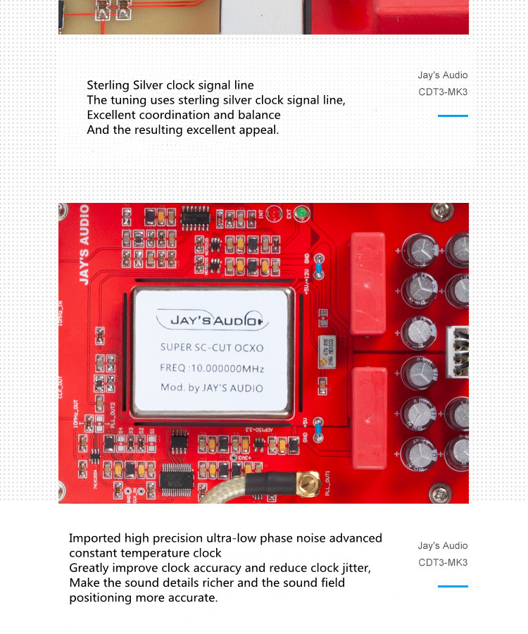- Built in imported high-precision ultra-low phase noise advanced OCXO constant temperature clock, and adopts sterling silver clock signal connection line. At the same time, 10MHz clock reference signal input and output port is also provided