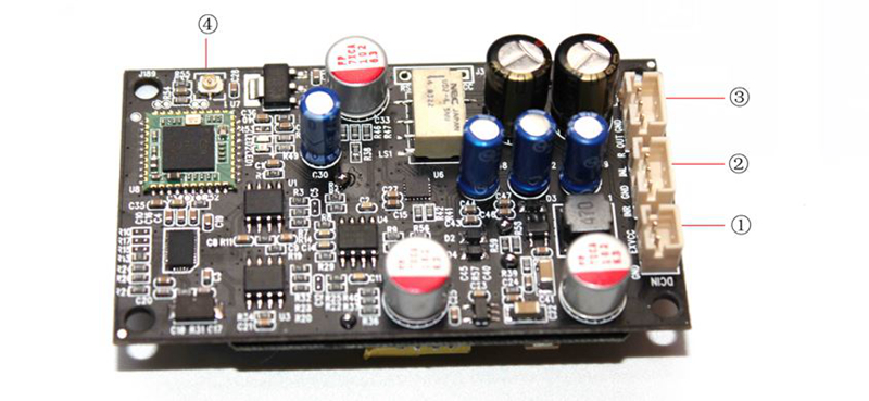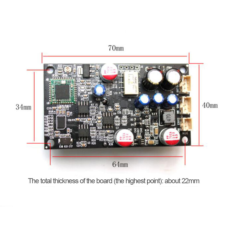 It is powered by a single DC power supply. It can be used in a wide voltage range of DC 10V-32V. The product is designed with an isolated power supply voltage regulator module, which can directly share the power supply with original power amplifier or preamp equipment. It can also be used for vehicle modification. The board comes with an isolated power supply voltage regulator module, which can be directly connected to 12V power supply on cars. Multi-level voltage regulator design, Bluetooth module, DAC chip, op amp chip are all independent power management chip power supply, op amp uses dual (positive and negative) 14V power supply, absolute HiFi design.