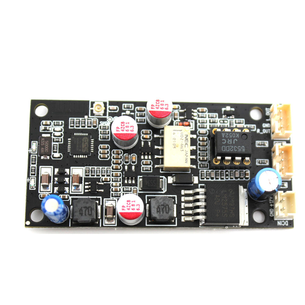 JC-SQ525 audiophile Bluetooth audio receiving board uses QCC5125 chip for Bluetooth digital audio signal receiving, and transmits I2S digital signal to the ESS9018 chip for decoding, and the output analog audio signal is filtered and amplified by dual op amps.
