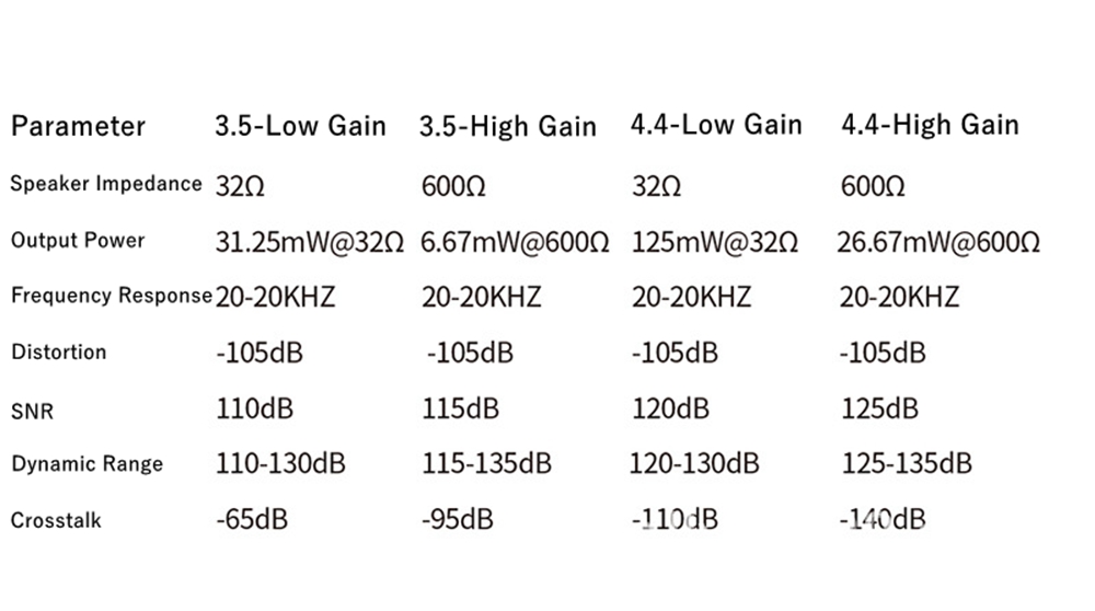 - Headphone interface: 3.5 single-end, 4.4 balance