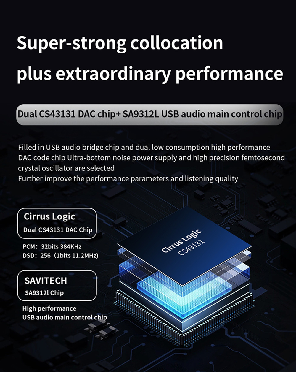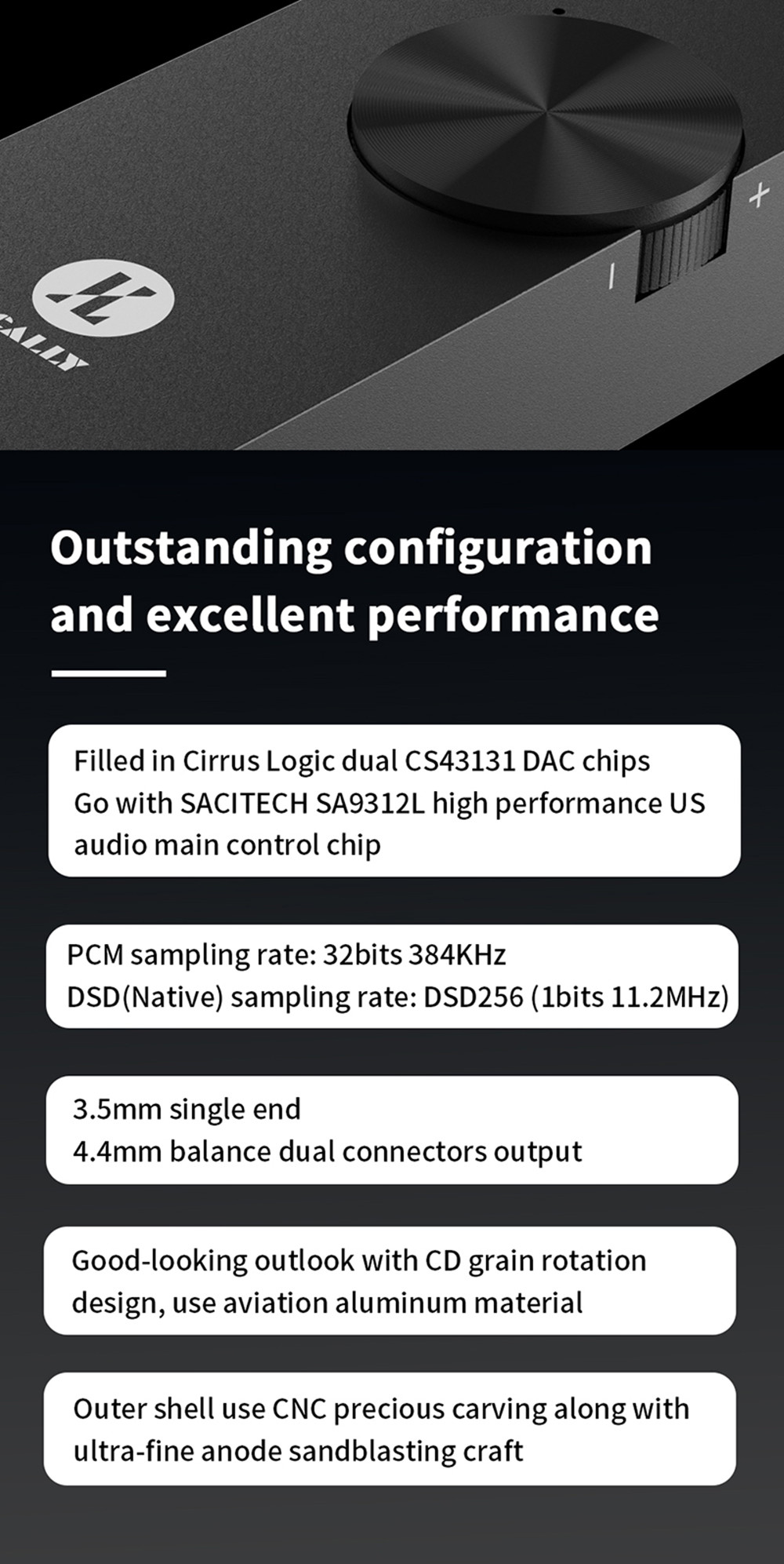 - Dual DAC chip: dual-channel CS43131 decoding chip