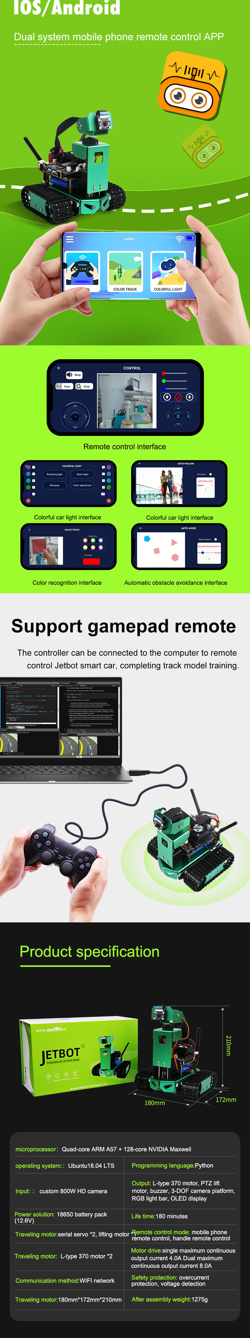 JETBOT Artificial Intelligence Car Kit Jetson Nano Vision AI Robot Autopilot without Motherboard 3OF Advanced Version