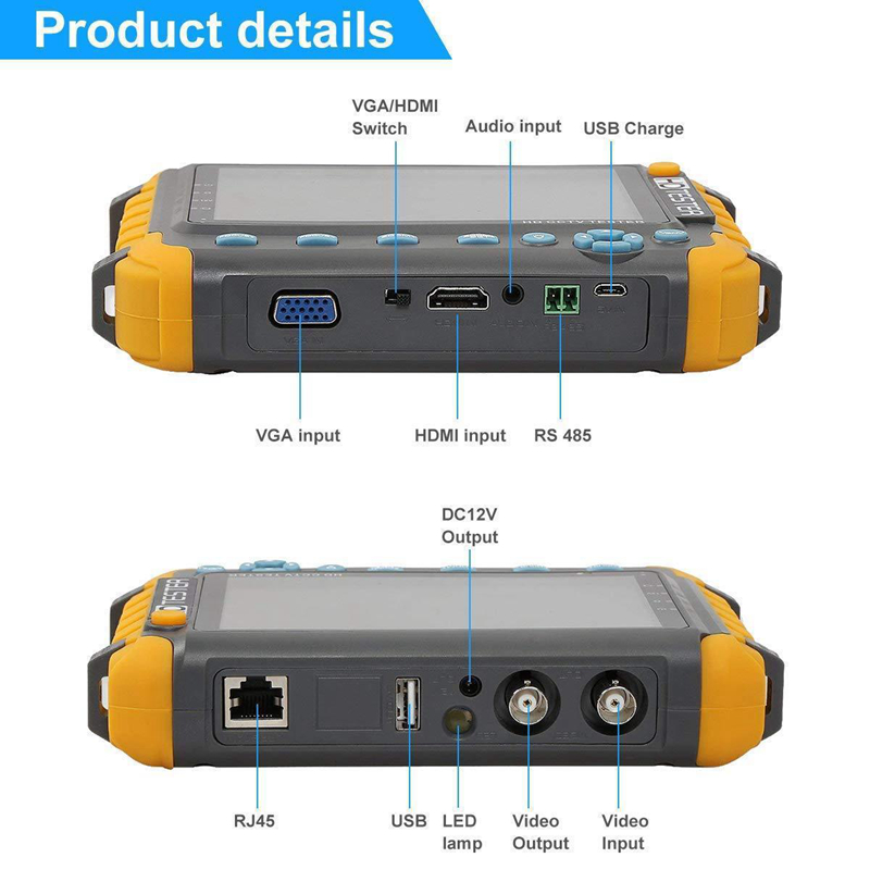 ● HD video surveillance tester with built-in high-definition 5.0-inch 800 (RGB) * 480 wide viewing angle display, supporting PAL/NTSC image signals