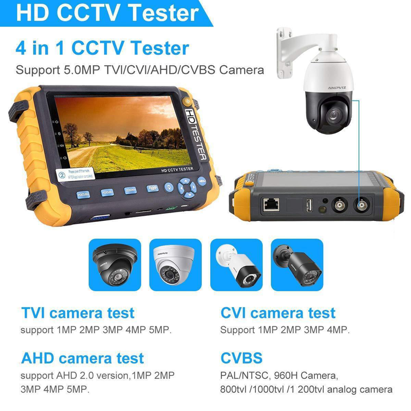 JSK-5800ACT-VH 5" HD CCTV Tester Security Camera Tester VGA HDMI Input For 5MP TVI 5MP AHD 4MP CVI