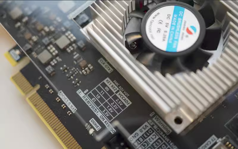 - On-board LEDs: 2 power status LEDs, 8 FPGA LEDs, DONE, PCIE power supply