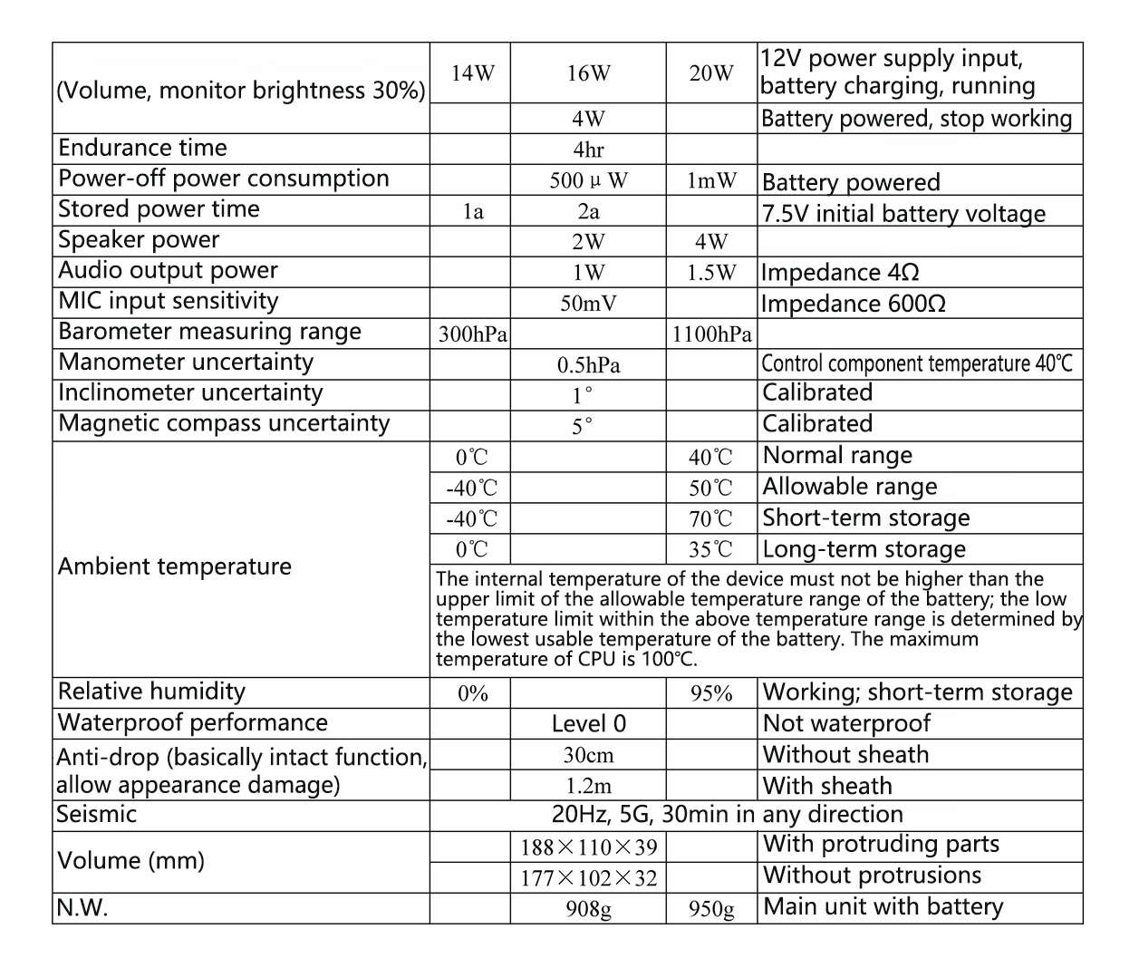 1. Only the parameters that are often concerned are selected for readers' reference. For detailed parameters, please refer to the user manual.