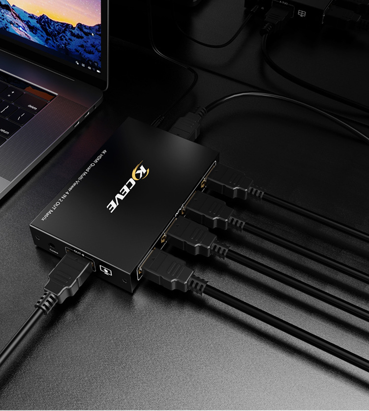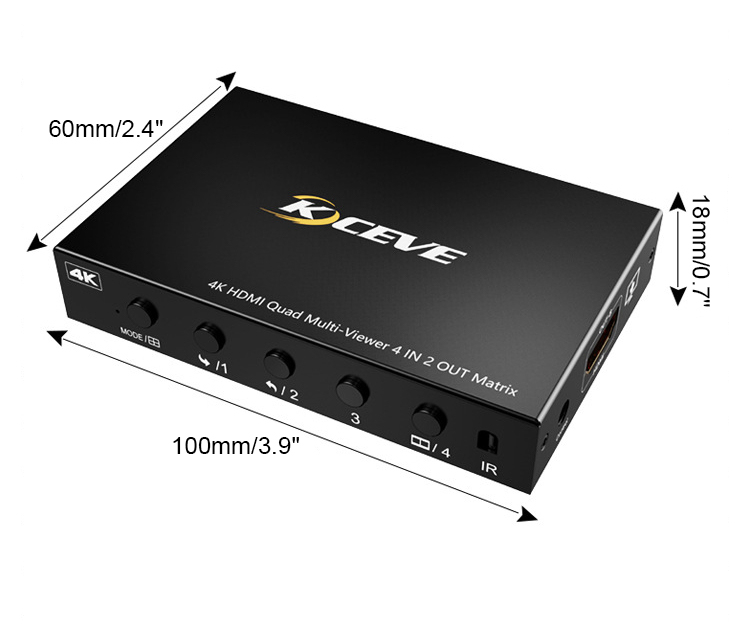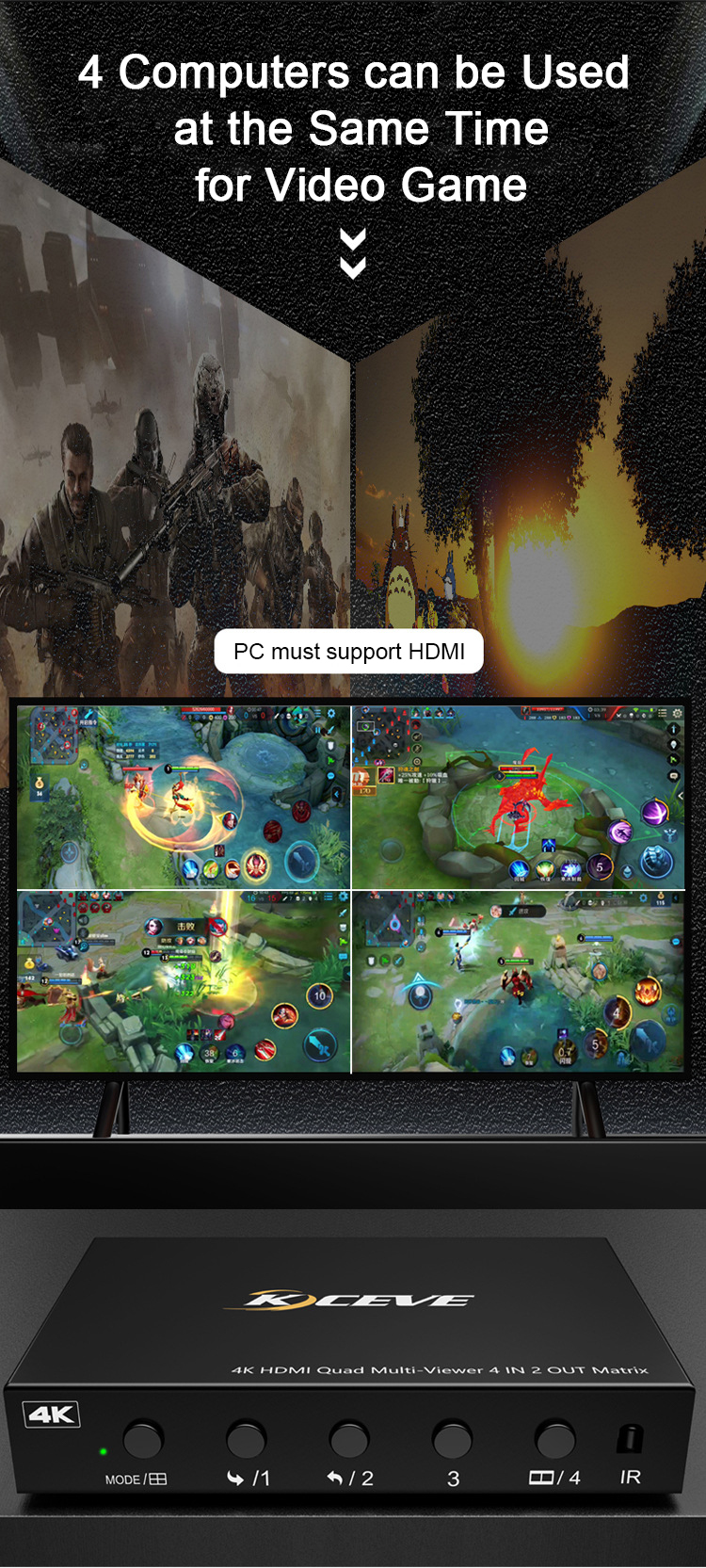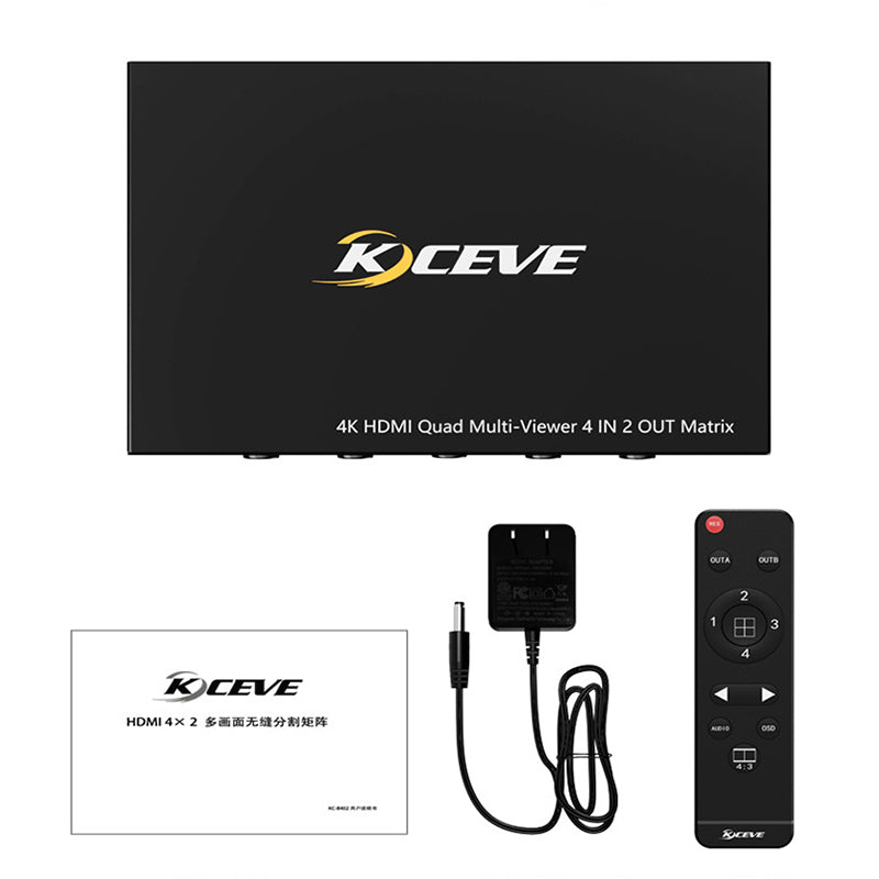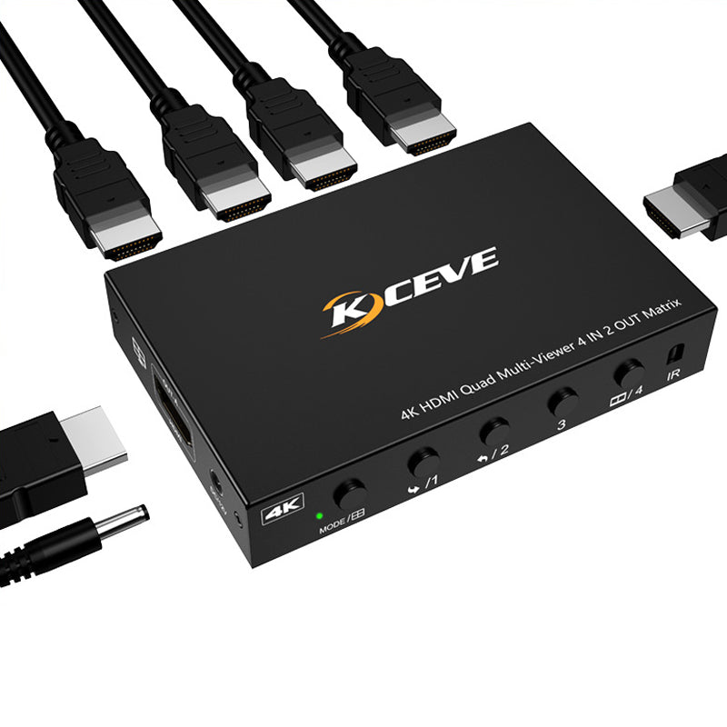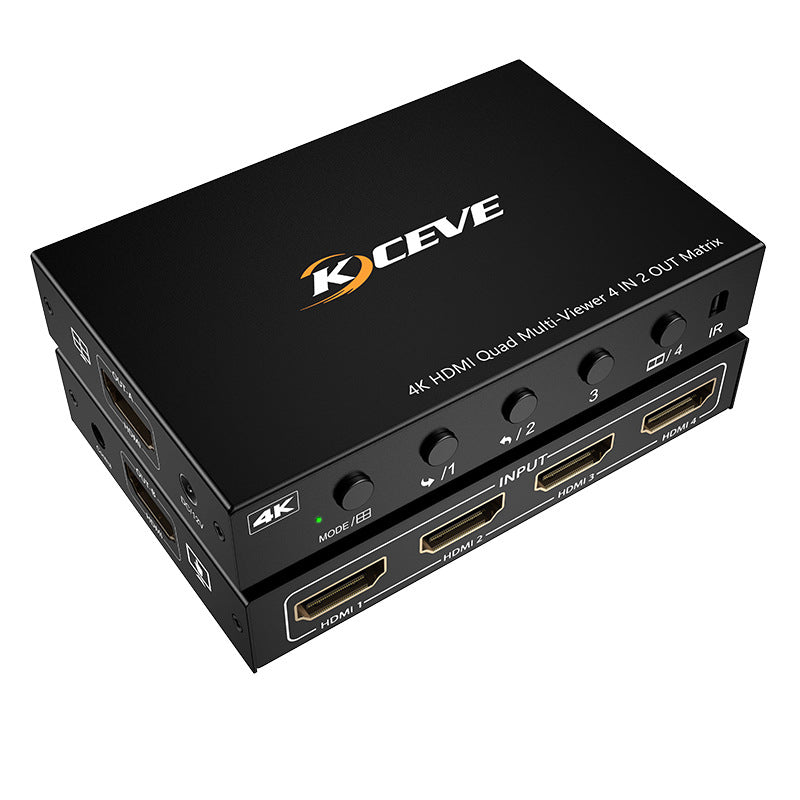 KCEVE KC-8402 4K HDMI Quad Multi-Viewer 4 IN 2 OUT Matrix HDMI Multiviewer Dedicated for Video Game