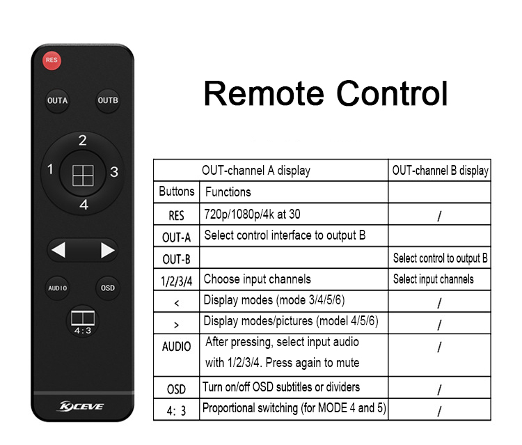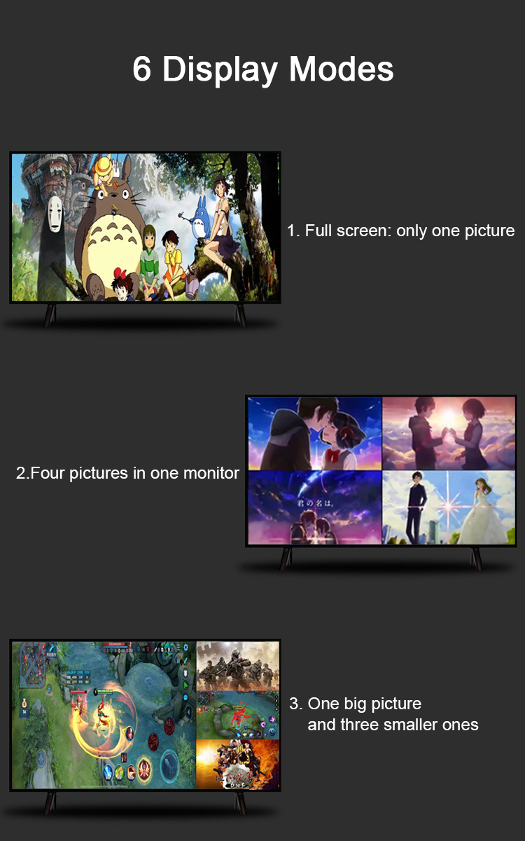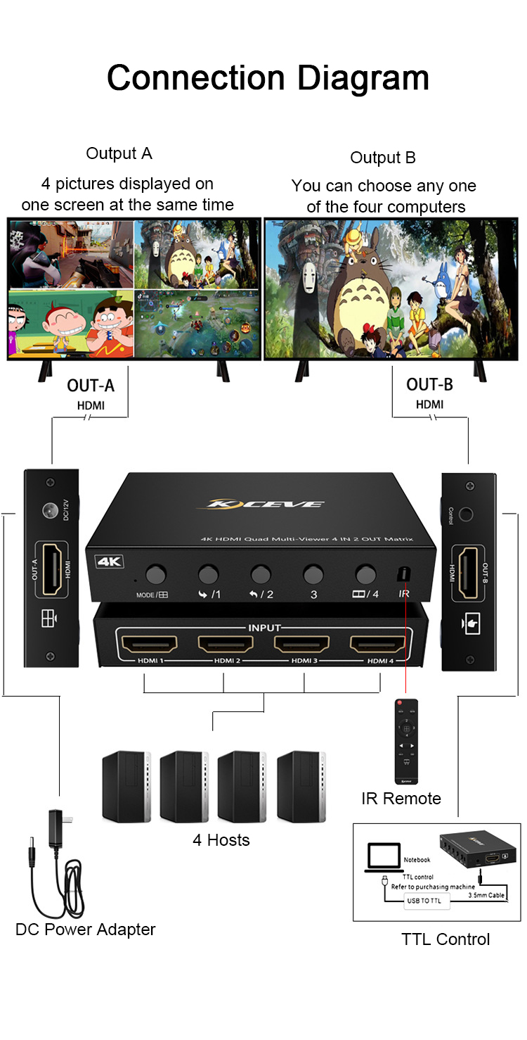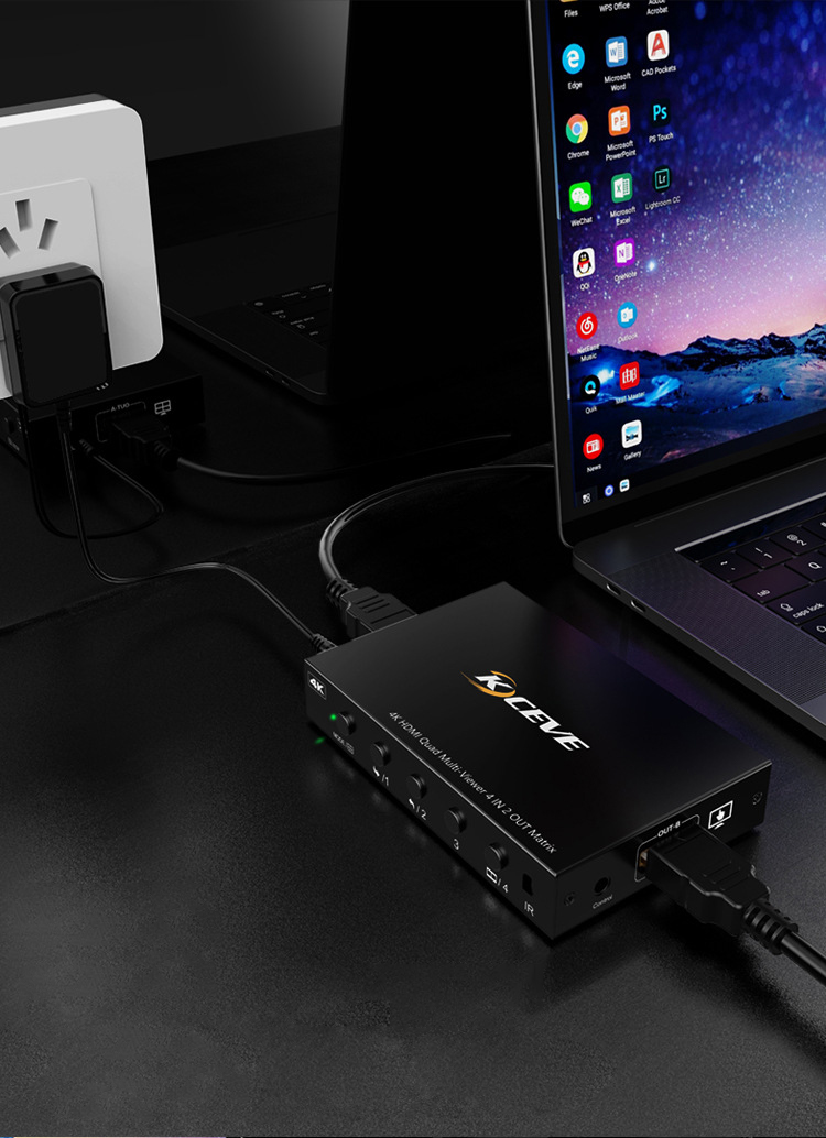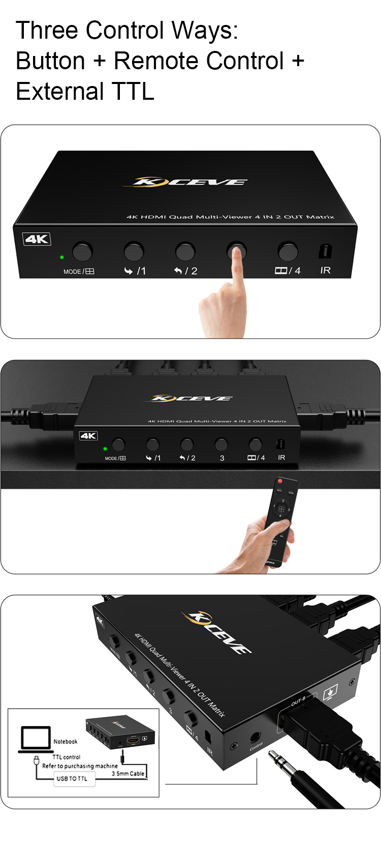 KCEVE KC-8402 4K HDMI Quad Multi-Viewer 4 IN 2 OUT Matrix HDMI Multiviewer Dedicated for Video Game