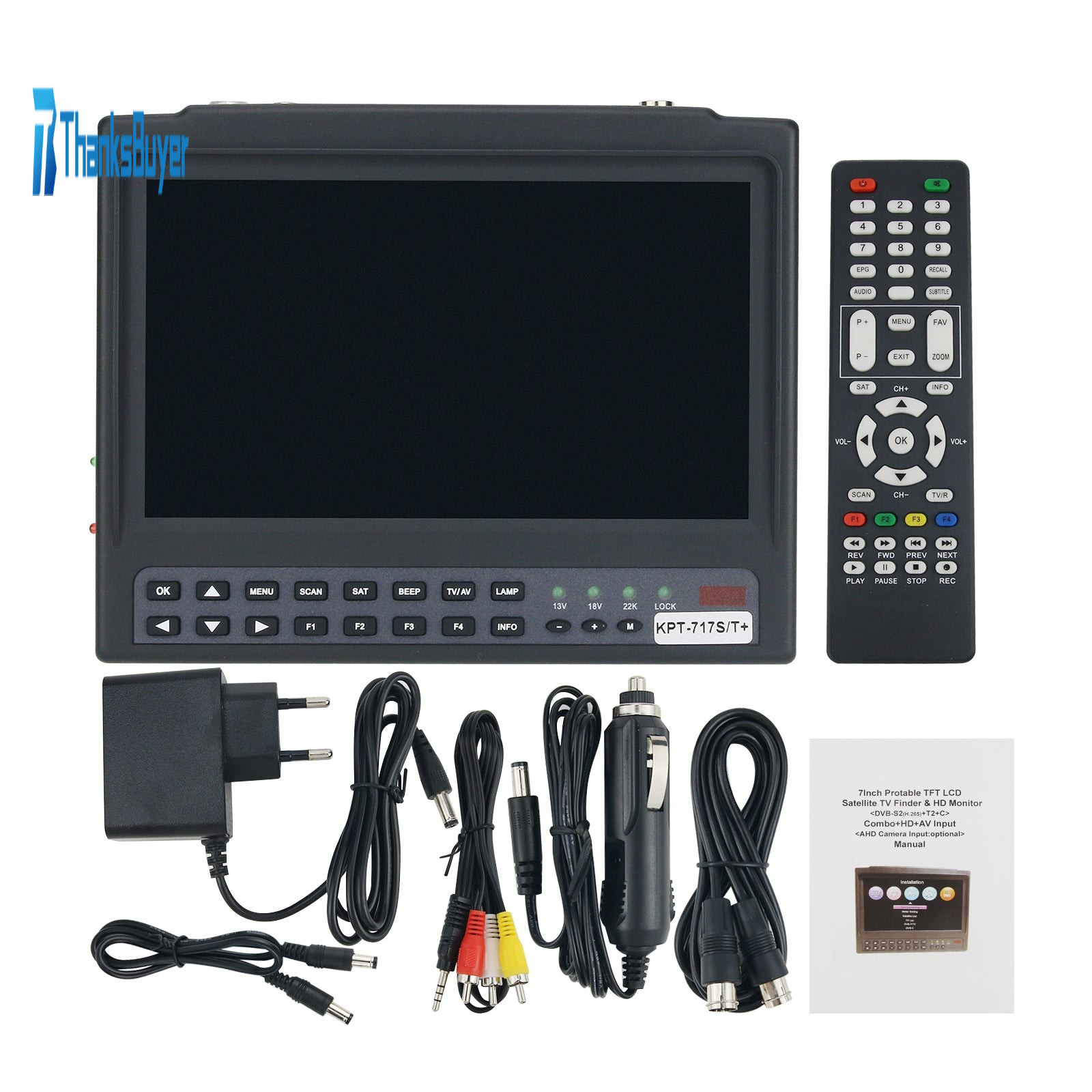 * 7" High definition TFT LCD Screen which can display channels (DVB-S/S2+T/T2+C); Support DVB-S/S2 MP4 HEVC (H.265) AVS/AVS+