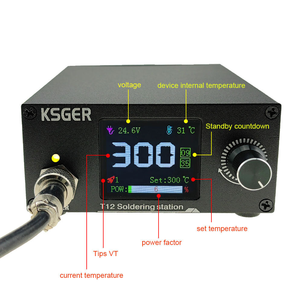 KSGER V2.3 T12 120W Soldering Station 1.8-inch Color Screen with T12-K + T12-ILS Soldering Tips for Electronics Repair