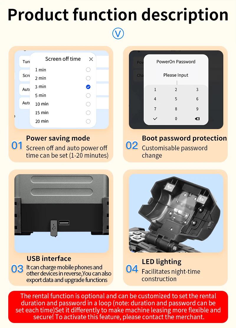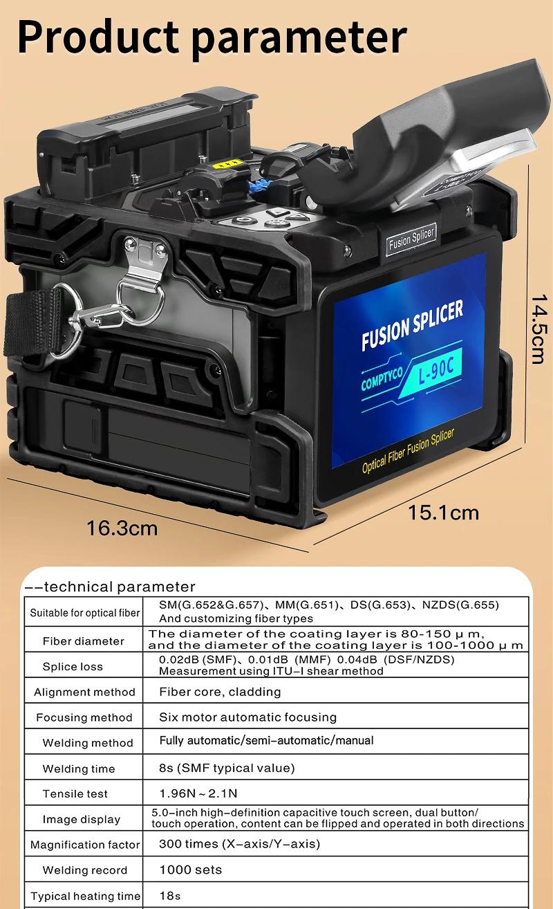 L-90C 6-Motor 3-IN-1 Fusion Splicer Built-in VFL and Optical Power Meter with 5-inch HD Touch Screen