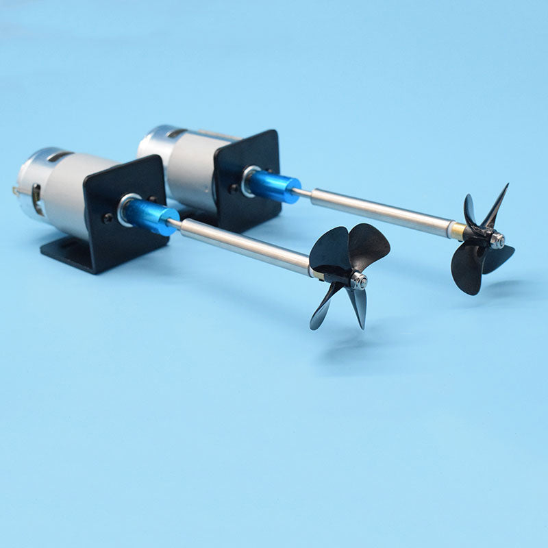 - The 775 motor drives the waterproof shaft to rotate the four bladed propeller, accelerating the forward speed. It is suitable for trawl boats, nest boats, etc. The waterproof shaft can effectively solve problems such as water ingress in the shaft length.