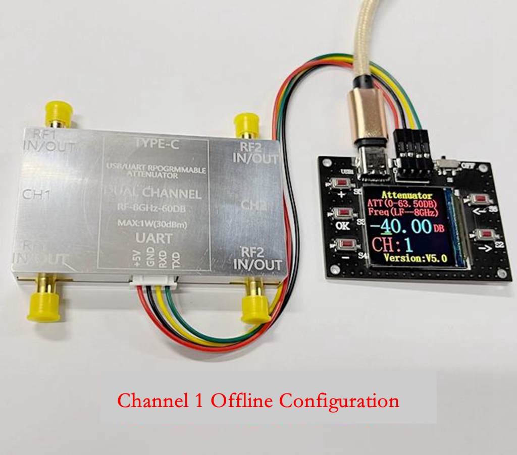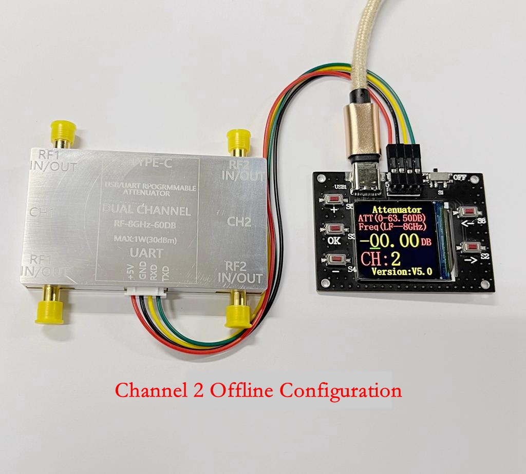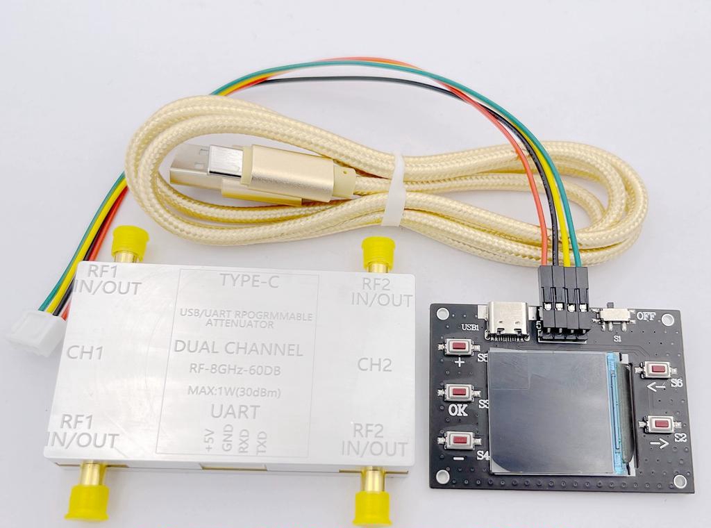 LF-8GHz Dual Channel RF Attenuator Module 60dB 50ohms with SMA Female Connector + Offline Main Control Module + TTL Cable