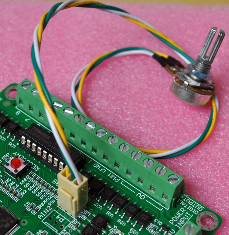 - 2 analog inputs, used to adjust the processing speed / jog speed / spindle speed.