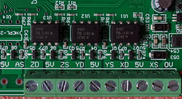 3-axis output signal (direction signal + pulse signal): 10MHz high-speed optocoupler isolation x6 channels
