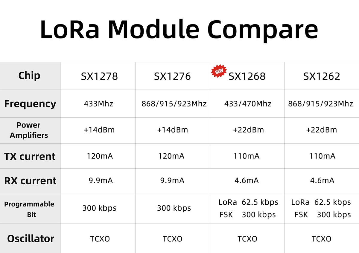 - Operating frequency: 433/470MHz (433HMz version)/868M/915M (868MHz version) SX1276