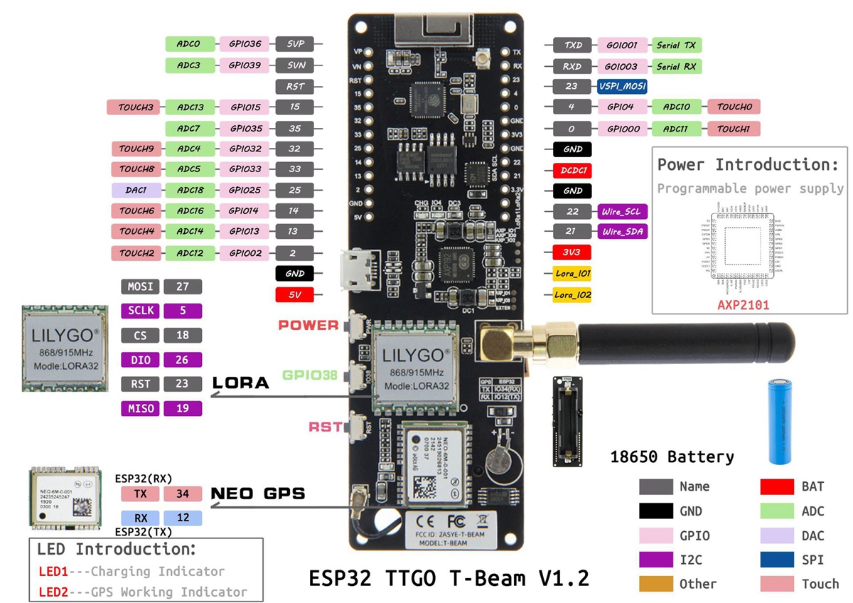 LILYGO 915MHz CH9102F AXP2101 T-Beam V1.2 LoRa ESP32 GPS NEO-6M Long Range Development Board