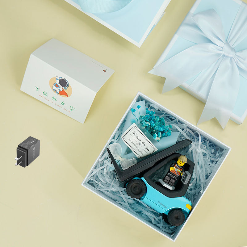 LinDesign Desktop Phone Stand Cell Phone Holder Wireless Charger (Blue) Gift Box Set Charging Plug