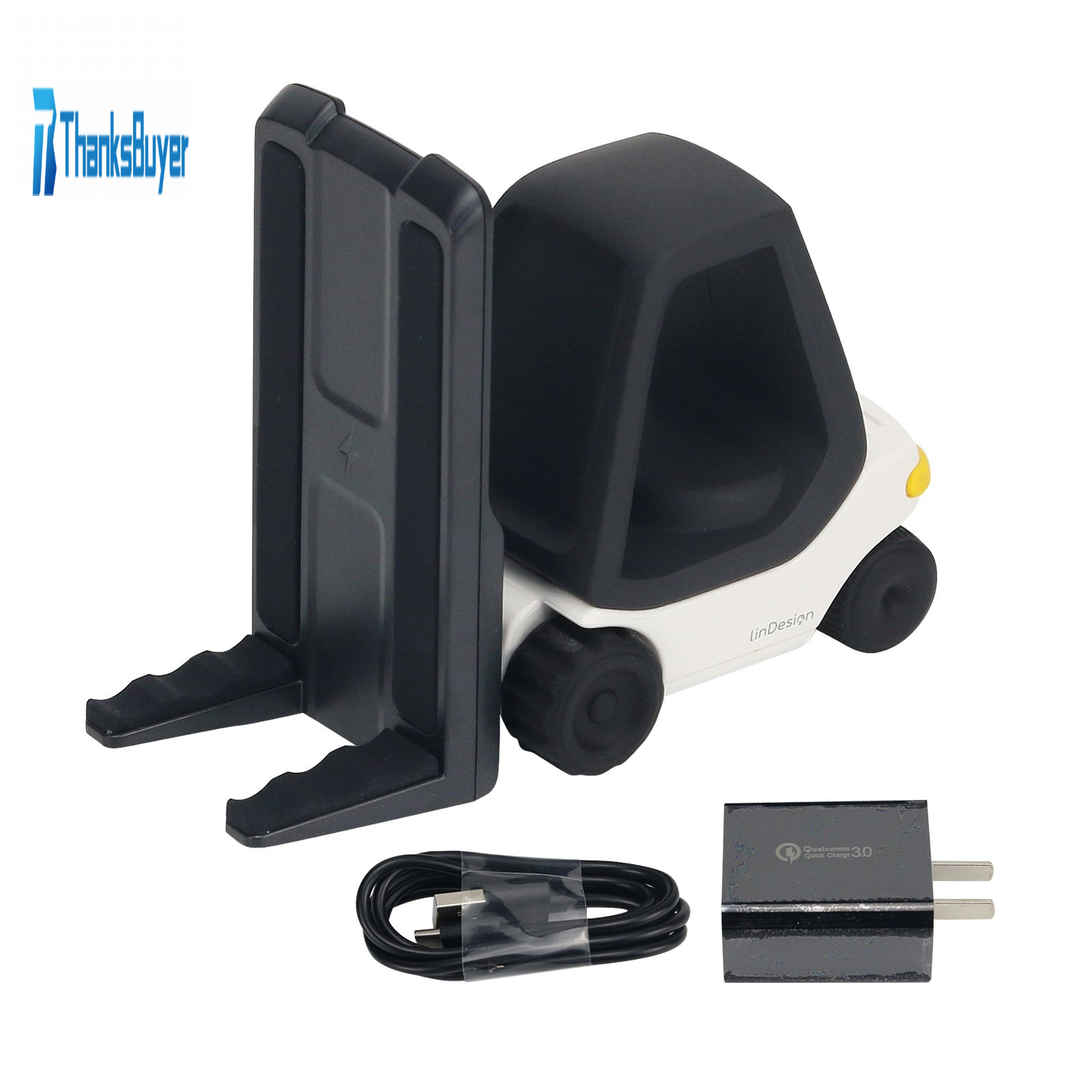 LinDesign Forklift Desk Phone Stand Phone Holder Wireless Charger (White) + 3.0 Fast Charging Plug