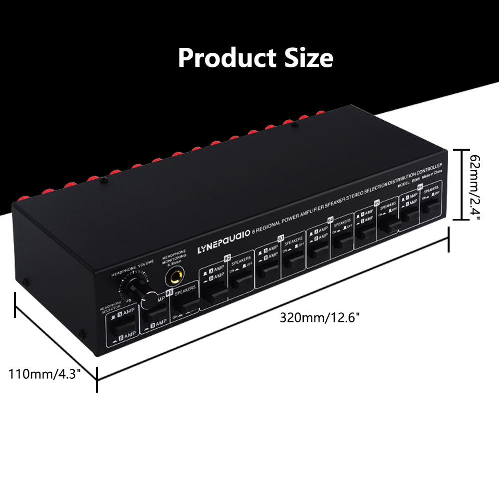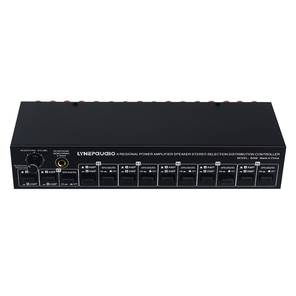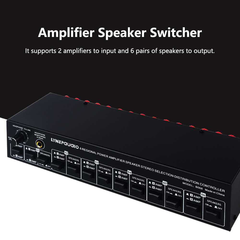 LINEPAUDIO 2 IN 6 OUT Amplifier Speaker Switcher Amplifier Speaker Selector w/ 6.35mm Headphone Jack