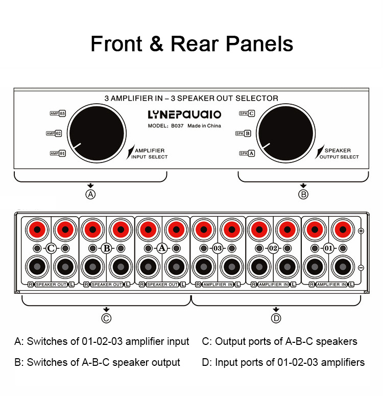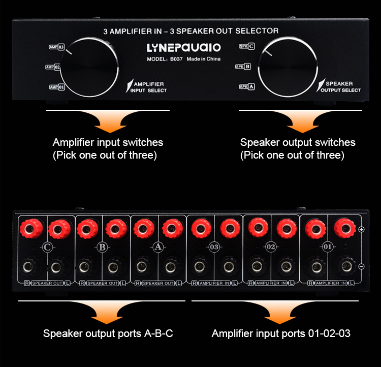 LINEPAUDIO B037 Amplifier Speaker Selector Amplifier Speaker Switcher Enables 3 Input and 3 Output