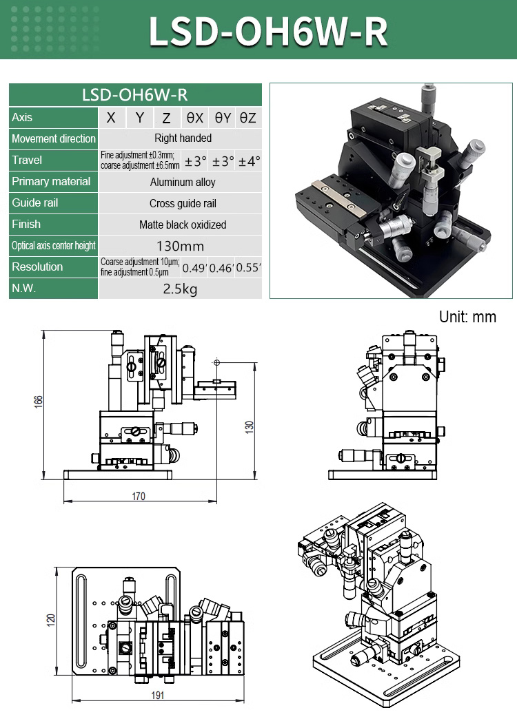 LSD-OH6W-R (Right Handed) 6-Axis Fiber Alignment Stage Manual Sliding Table with Micrometer Heads