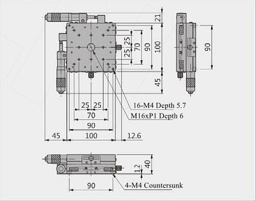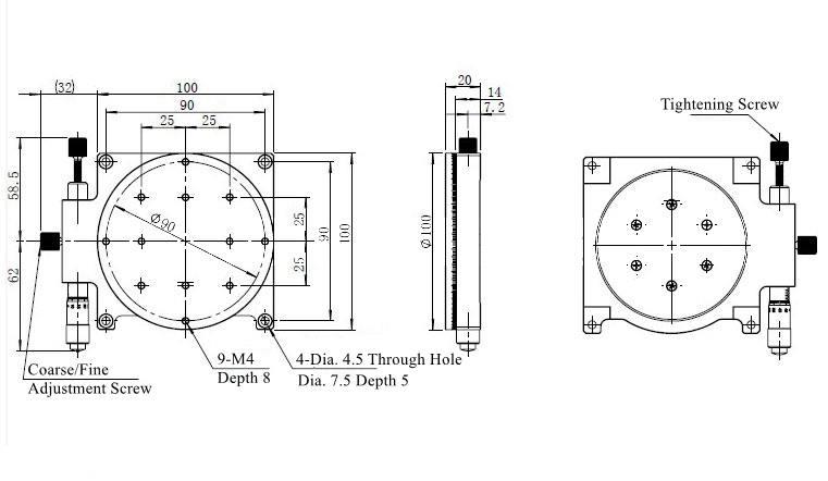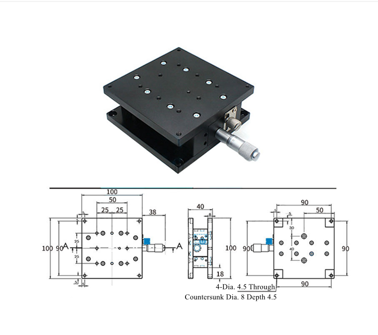 LT100-L-2 XYZR Axis Manual Linear Stage Manual Sliding Table Translation Stage Platform 100MM*100MM