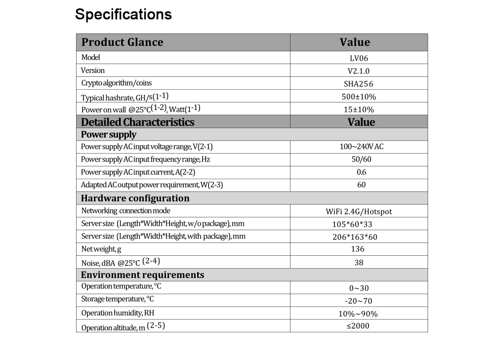 * Convenience: The LV06 miner is compact and portable, designed with a DC interface for easy connection to AC sockets (100-240V) with an adapter, allowing mining anytime, anywhere.